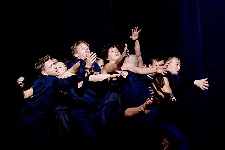 Expression. Dann aber braust der Orchestersturm los und die gesamte Compagnie ist auf der Bühne, Chaos bricht aus, das sich in Ordnung wandelt, um wieder in Chaos zu zerfallen, die Masse ballt und balgt sich. Das sich verändernde Licht lässt die schwarzen Wände metallisch schimmern, bewegte Bilder entstehen, auch wenn die Choreografin keine Geschichte erzählt: Menschen, die einander bekriegen, die ausgeliefert sind und hungern; Flüchtlinge rennen um ihr Leben, Traurige werden getröstet, Verletzte gepflegt, die Agressionen lassen sich kaum noch beherrschen.