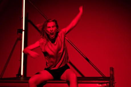 Mette Ingvartsen: „The Dancing Public”, Konzept, Performance, Bühnenbild, Musikalisches Arrangement: Mette Ingvartsen. Unterstützung von Minna Tikkainen (Lichtdesign und Bühnenbild) und Anne van de Star (Musik). 29., 30. April 2022, Tanzquartier.