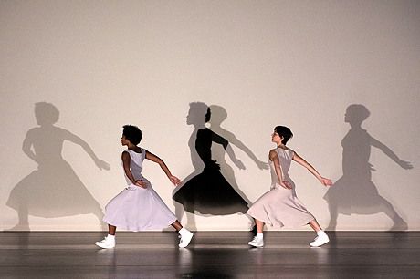 Reichs Komposition beginnt mit Text, der Aussage eines 19-jährigen aus Harlem, der im Zuge von Unruhen verhaftet und erzählt, dass er im Gefängnis geschlagen worden ist: „I had to, like, open the bruise up, and let some of the bruise blood come out to show them“ („Ich musste den Bluterguss aufschneiden und etwas von dem Blut herauslaufen lassen, um es ihnen zu zeigen“). Diese Phrase wiederholt Reich, spielt sie als Echo zurück und bald ist ein vielstimmiger Kanon zu hören, bis das Gesagte immer unverständlicher wird, Rhythmus und Klang des gesprochenen Satzes verschwimmen zur Musik. Ebendieses passiert auch auf den zwei Hockern, die anfangs streng abgezirkelten nahezu militärischen Bewegungen (statt des hellen einfachen Mädchen-Kleides tragen die Tänzerinnen jetzt dunkle lange Hosen und Westen) werden immer mehr zum gemeinsamen fließenden Tanz. In Piano Phase lässt De Keersmaeker auch die Schatten der Tänzerinnen, mehrfach und gedoppelt, scharf und dunkel oder als helle Silhouette, erzeugt von unterschiedlichen Lichtquellen, mittanzen. Effektvoll und verwirrend.