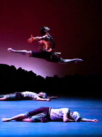 Das Gegenstück zu diesem sanften Pas de deux bekommt das Publikum nach der Pause zu sehen. Mit dem berühmten Säbeltanz aus Gajaneh reißt das Staatsopernorchester unter dem erfahrenen Ballettdirigenten Paul Connelly das Publikum fast von den Sitzen.