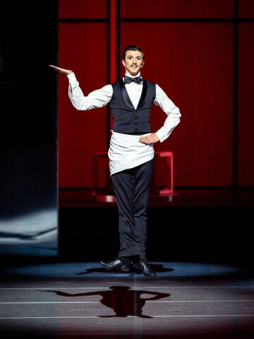 Als sich ins Ensemble schmuggelnder Csárdás Tänzer bringt er das Publikum zum Lachen, auch wenn er den echten Ungarn (ein Debüt des Halbsolisten Duccio Tariello) nicht zu verdrängen vermag. Als Gefängniswärter, der bei Johann Strauß „Frosch“ heißt und eher ein gewöhnlicher Trottel ist, doch bei Petit voll französischen Charmes, schwingt er seinen Schlüsselbund voll Elegance als Glockenspiel.