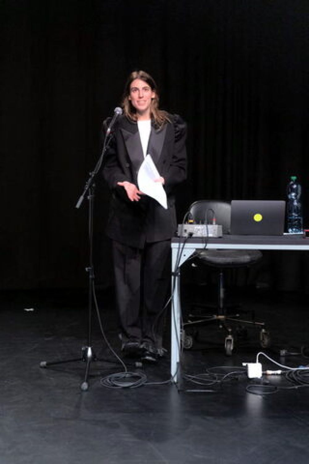 Anfangs jedoch ist sie die Gastgeberin und Moderatorin für das geladene Publikum. Ein durch Stottern und zahllose Patzer, Wiederholungen samt einer schier endlosen Liste an zu Bedankenden und Ehrenden. Sie findet das Mikro nicht und muss deshalb ständig fragen, ob man sie auch hört und schreckt ein Blitz das schon etwas genervte Publikum auf. Die Filmemacherin hat mit ihrer dauernd an den Lippen hängenden Wasserflasche einen Kurzschluss produziert.