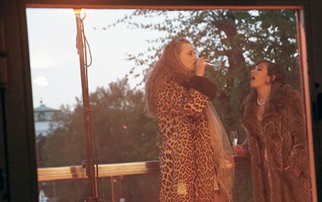Das mag manche enttäuscht haben. Der 2. Teil der Vorarbeit für die Performance, die im November unter dem Titel „Vive l’armee!“ im Tanzquartier zu sehen sein wird, ging einmalig im brut über Bühne und Balkon. Auf diesem treffen einander zwei Dämchen im Pelz (Judith Rohrmoser, Sophie Resch), schlürfen Champagner und diskutieren über Sinn und Unsinn, Notwendigkeit und Schande des Krieges. Der Text stammt vom französischen Autor Roger Martin du Gard, der 1937 für seinen im deutschen Sprachraum kaum bekannten Familienroman „Les Thibault“, einem Abgesang auf das bürgerliche Zeitalter, mit dem Nobelpreis für Literatur ausgezeichnet worden ist. Aus diesem 800 Seiten starken Werk haben die Darstellerinnen zitiert. Ein schöner Kunstgriff der Regie. Der Krieg, männlich konnotiert und verursacht, wird von Frauen betrachtet. Eigentlich sind es drei, die da zusammenkommen, zwei Brüder und ein Freund. Die zwei Freund (bei Superamas eben Freundinnen) sprechen aus dem off, mit ausdrucksvoller Miene und jeweils geöffnetem Mund agieren sie stumm hinter der Glasscheibe. Der jüngere Bruder ist irgendwo hinter den Bäumen, ihm wird nur gewunken.