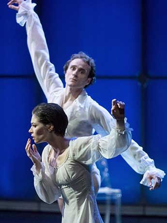 Ludwig, der König, geht ihr auf die Nerven, seine Eifersucht, seine kindische Untätigkeit macht sie wütend. Wenn Yakovleva die Knie hebt, meine ich, sie verpasst ihm gleich einen ganz unköniglichen Pferdekuss (das ist ein noblerer Name für den österreichischen „Knödelreiter“), dann aber besinnt sie sich wieder und schmiegt sich liebevoll an ihren Mann. Der wird von Roman Lazik (nicht zum ersten Mal) mit vielen Facetten getanzt und wie seine Partnerin beherrscht er perfekt De Banas Bewegungssprache. Wunderschön der Pas de deux des verzweifelten Paares zur Arie des Anastasio aus Antonio Vivaldis Oper „Il Giustino“. Doch Yakovlevas Marie Antoinette spürt jeden seelischen Hieb, den das Schicksal (unerbittlich und mitleidlos im Ausdruck tanzt ihn Géraud Wielick technisch fulminant) ihr durch sein Auftauchen versetzt im ganzen Körper. Der Tod hat sie umarmt, schon lange bevor sie sterben muss.