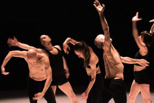 Die Choreografie des Belgiers Jan Martens „Man Made“ ("menschengemacht") ist gemeinsam mit den Tänzer*innen entstanden und im März 2017 in Hamburg uraufgeführt worden. Das Spiel setzt in aller Stille ein und sieht anfangs aus wie eine Aufwärm- oder Turnübung, sind die Mitwirkenden doch auch in schlichte schwarze Trikots gekleidet. Sie tasten sich ab, pendeln sich ein, machen sich miteinander und auch mit ihrem Körper vertraut, bald entsteht ein gemeinsamer Rhythmus. Jede*r tut das Gleiche, doch es ist nicht dasselbe. Noch tanzen fünf Menschen für sich, doch die allmählich einsetzende Musik gibt einen Rhythmus vor, der übt einen Sog aus. Die individuellen Muster gleichen sich immer mehr an, fügen sich in den gemeinsamen Rhythmus, bis die Gruppe im anschwellenden Sound (Mattef Kuhlmey) zu einem Körper wird, der sich einer Bewegung hingibt.