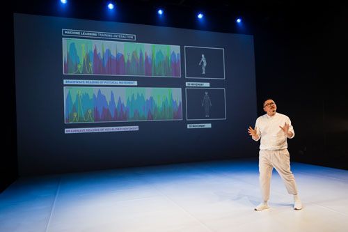 Schon Gotthold Ephraim Lessing hat die Bewegungen des tanzenden Körpers mit der Technologie, jener, die im 18. Jahrhundert eben zur Verfügung stand, nebeneinandergesetzt und ist zu dem Schluss gekommen, dass der „Gliedermann“, die Marionette, mehr kann als der Menschenmann / die Menschenfrau, länger in der Luft bleiben vor allem. Jetzt benutzt der Dance Doctor Neurowissenschaften und Künstliche Intelligenzen (oder künstlich Intelligente, wie der Doctor sagt), um uns auf unsere bedingungslose Anbetung der neuen Technologien aufmerksam zu machen, oder auch, um die gern geschürten Ängste vor dieser zu zeigen.