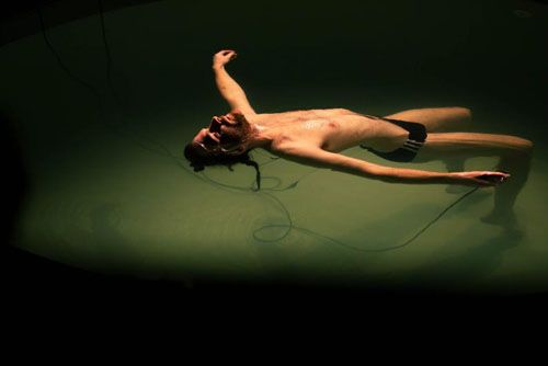 „wet dreaming at 52Hz“ ist eine Unterwasser-Konzertperformance. Alex Franz Zehetbauer taucht mit seiner Arbeit in die tönende Welt der Wale ein und macht sie für das Publikum hör- und spürbar. „wet dreaming at 52Hz“ ist im Rahmen von imagetanz am 15. März uraufgeführt worden. Als Spielort hat das brut-Team die Augarten-Studios gefunden. Nirgends sonst hätte das schwere Wasserbecken aufgestellt werden können.