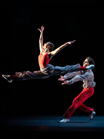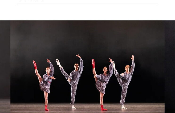 Zum Auftakt ist lebhafte Neoklassik vom international renommierten Choreografen Justin Peck, Jahrgang 1987, zu sehen. Vor dem brüllenden Bühnenbild von Shepard Fairey laufen, zappeln, gleiten die Tänzerinnen in lockerer Tenniskleidung über einen durchsonnten Platz. Heatscape / Hitzelandschaft nennt er die 30 Minuten, die 2015 für das Miami City Ballet entstanden sind. Zum Konzert für Klavier und Kammerorchester Nr. 1 D-Dur von Bohuslav Martinů erfreut sich eine Gruppe junger Menschen des Lebens, vielleicht rennen sie bald an den Strand. In den ersten beiden lustig perlenden Sätzen des Konzerts erobert je ein Paar de die Bühne, im dritten wird der Pas de deux zu einem Pas de trois. Die Halbsolisten Vaclav Lampater und Rinaldo Vinuti umtanzen Yo Nakajima, eine Corpstänzerin, die durch Sicherheit und Anmut auffällt. Peck kümmert sich nicht um Rangordnung in der Compagnien, lässig mischt er Erste Solisten mit dem Corps. Getanzte Demokratie,