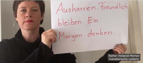 WuK performing arts: Video mit Statements der freien Tanz- und Performanceszene nach 114Tagen Lockdown und geschlossenen Theaterhäusern. Idee und Realisierung: Ulli Koch: „Mit großem Dank an alle Beteiligten. Und Zuversicht, dass wir wieder vor Publikum spielen werden."