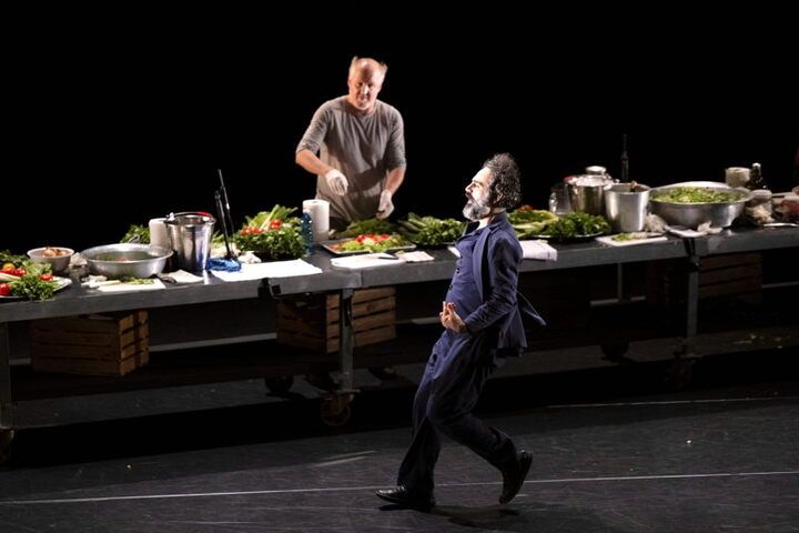 Beytna/ Die Einladung. Die Mutter kocht. Der libanesische Choreograf Omar Rajeh hat seine Mutter in die Choreografie eingebaut. Auf der Bühne steht ein langer Tisch, darauf sind Schüsseln und Teller, Gemüse und Obst, die Mutter steht an den Töpfen. Die vier Musiker aus dem Libanon und Palästina machen inzwischen den vier Tänzern der Gruppe Maqamat Appetit. Anani Sanouvi aus Westafrika, der Belgier Koen Augustijnen und der Koreaner Moonsuk Choi sie bringen ihre eigenen Erfahrungen und ihre Tradition zu diesem (Tanz-)Fest mit. Die Kunst trifft auf den Alltag, die Unterschiede verschwimmen, beim Essen entsteht eine Gemeinschaft. Ein Fest mit Tanz und Musik, Text und Filmeinspielungen rund um den Tisch auch für das Publikum. Gründonnerstag, 17.4. Innsbruck, Congress (Dogana).