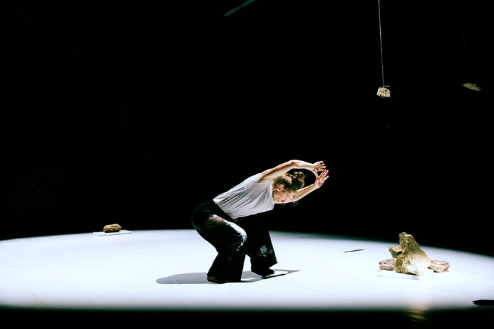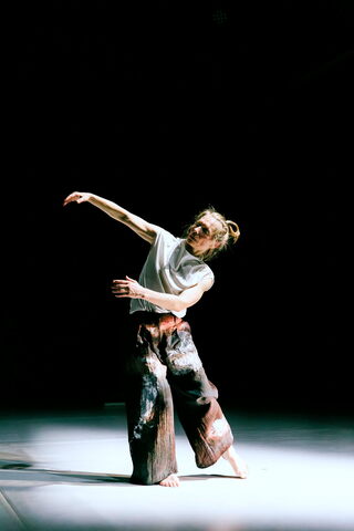 Vor der Pause zeigt die sensitive und immer wieder großartige Tänzerin Andrea Nagl ihr neues Solo becoming (stone) zu dem Karlheinz Essl die Musik komponiert hat und die Tänzerin live begleitet. Wenn der Stein, das Steinige, das Versteinern in Klammer steht, so darf angenommen werden, dass es auch ohne Ziel schlicht ums „Werden“, also das Verändern geht. Andrea Nagl fesselt mit intensiven Bewegungen, weich geschwungenen Armen und starker Präsenz. Die Bewegungen werden langsamer, oft sieht die Tänzerin ihre Hände und Arme zweifelnd an, als wüsste sie nicht, was mit ihnen geschieht. Essl elektronische Musik lässt an Natur denken und macht auch (was Andrea später erzählt), dass Steine gar nicht versteinert sind. In ihrem Inneren rumort es, Moleküle bewegen sich, chemische Vorgänge verändern den Stein. Eine Performance, die Schönheit und Tiefe zugleich zeigt und den menschlichen Körper in die Geologie einfügt.