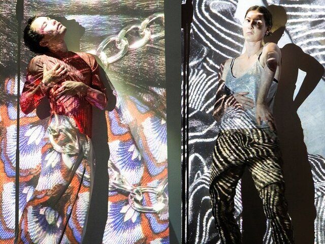 Den Tänzerinnen von Liquid Loft gebühren ebenso dichte Lorbeeren wie den Musikerinnen von PHACE. Zehn Performerinnen agieren zwischen live Kamera und Projektionsfläche, verschieben die Hüften, recken und strecken sich, plappern und senden mit weit geöffnetem Mund stumme Schreie aus.